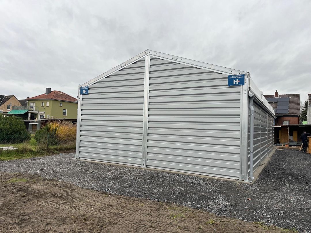 Für betriebliche Lagerzwecke wird eine temporäre Zelthalle der Firma Herchenbach errichtet. Die Halle dient als flexibel nutzbarer, witterungsgeschützter Lagerraum und ermöglicht eine kurzfristige Erweiterung der vorhandenen Kapazitäten. Die Konstruktion ist modular aufgebaut, ermöglicht eine schnelle Montage sowie Demontage und erfüllt die erforderlichen statischen und sicherheitstechnischen Vorgaben.